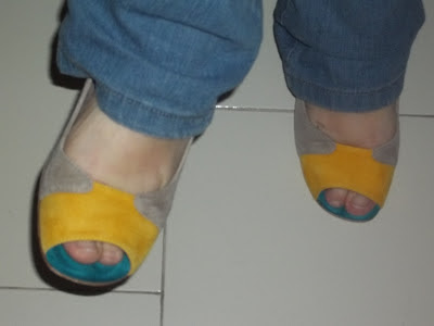 Ma che belle le tue scarpe mi piace l'abbinamento particolare dei colori, il tacco solido e comodo e il camoscio che è sempre molto confortevole.